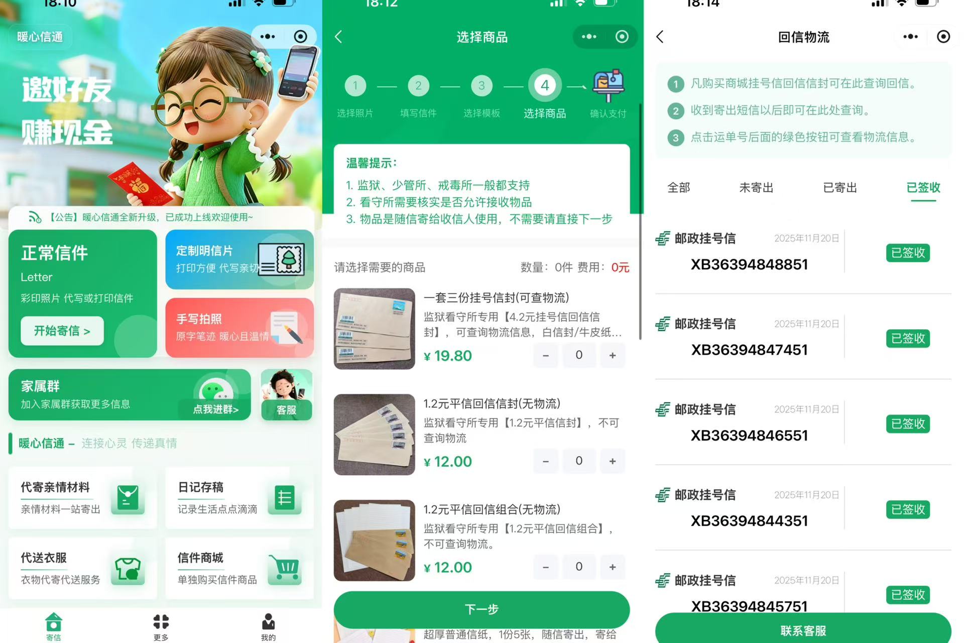 - 免费代收回信服务,回信直接寄到家,无需额外奔波。