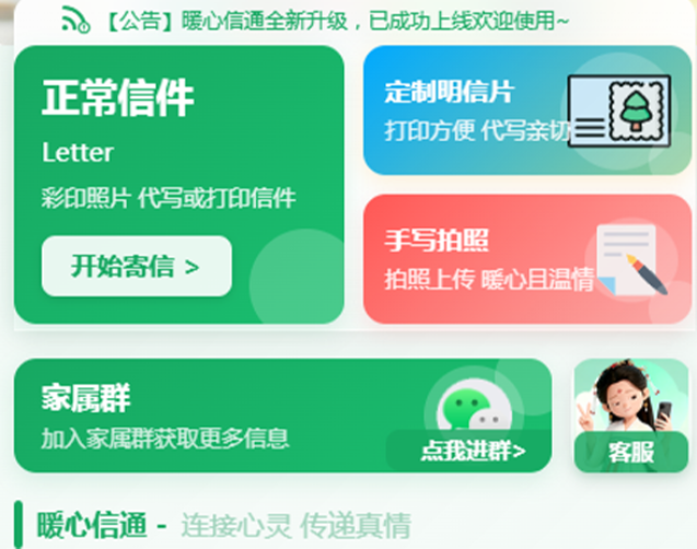 暖心信通专为监所通信打造线上寄信通道,无需出门跑腿,微信小程序一键操作,在线编辑信件、上传生活照片,全程简单便捷。平台具备正规备案资质,严格遵循全国监狱管理规定,专业人员合规审核内容,统一使用规范信封封装,从源头减少退信情况,寄送更有保障。